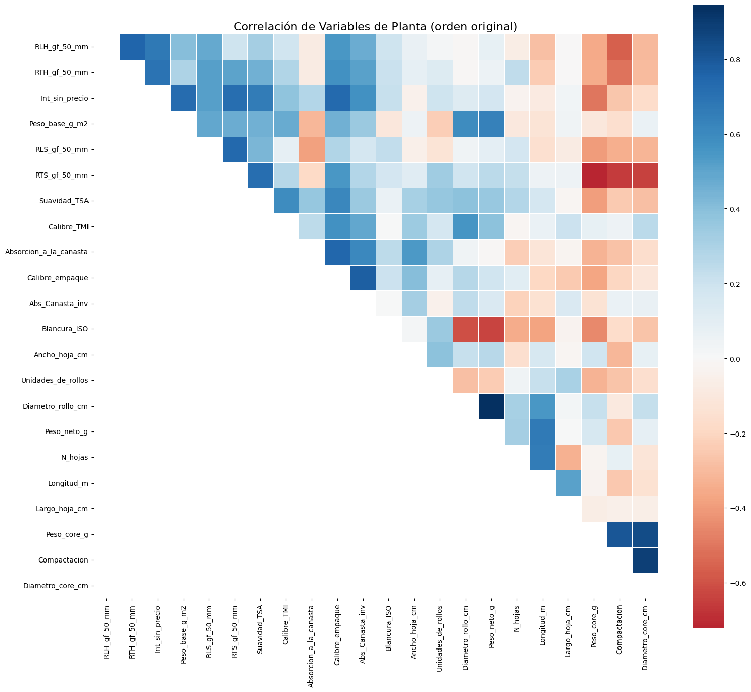 Correlación de Variables de Planta