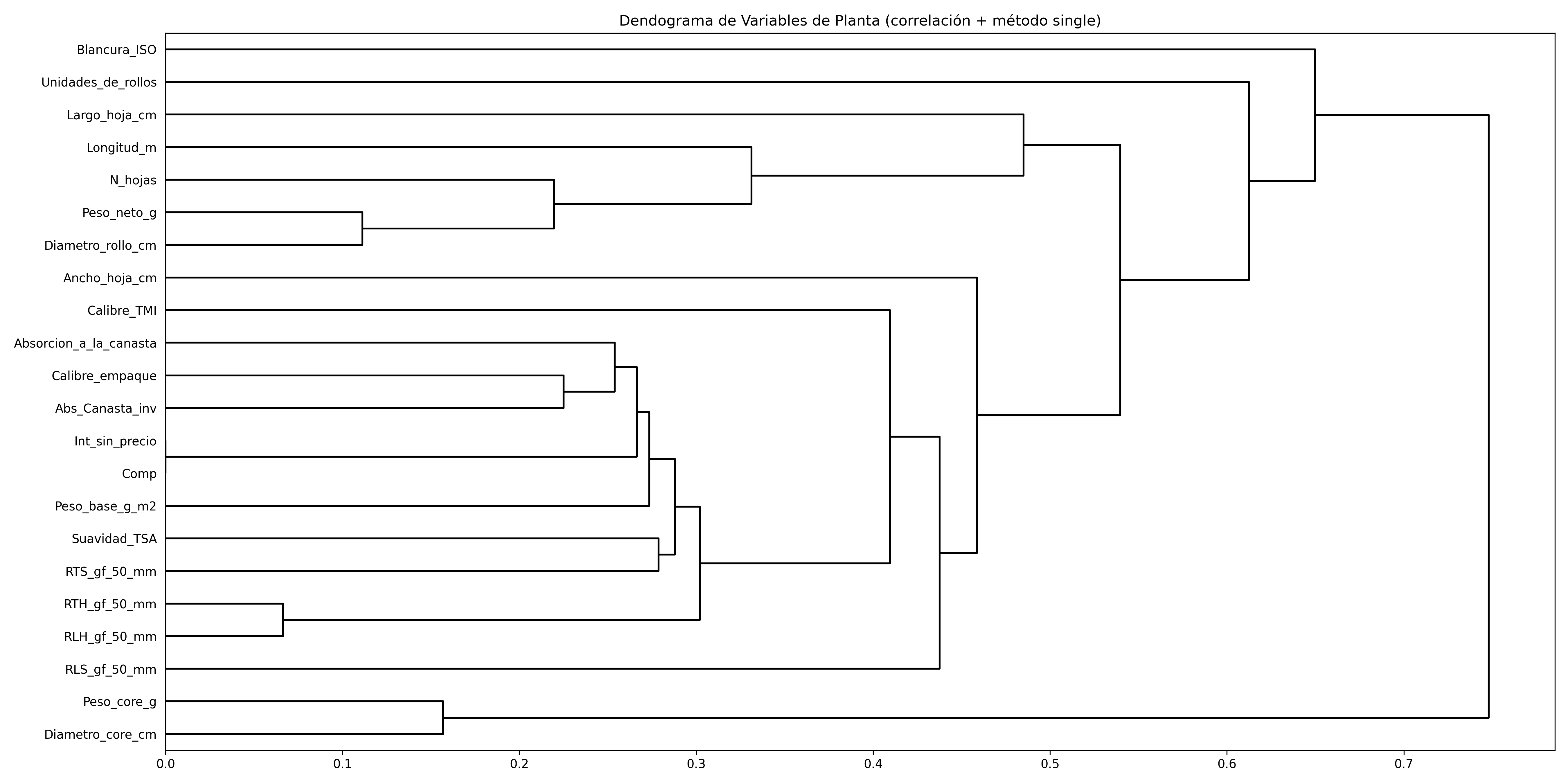 Dendograma de Variables de Planta